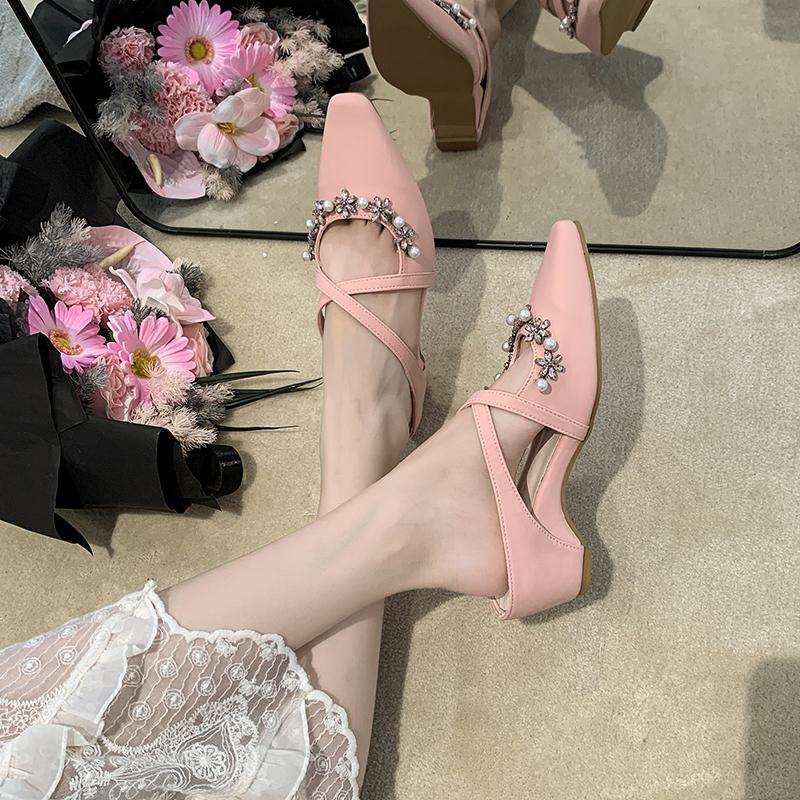 Летние новинки 2025 года, женские туфли-шлепанцы на платформе с жемчугом и стразами