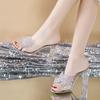 Туфли со стразами и бантом для женщин на каблуке, прозрачные женские тапочки с открытым носком, шлепанцы в продаже, дизайнерская роскошь, тренд 2025, сандалии