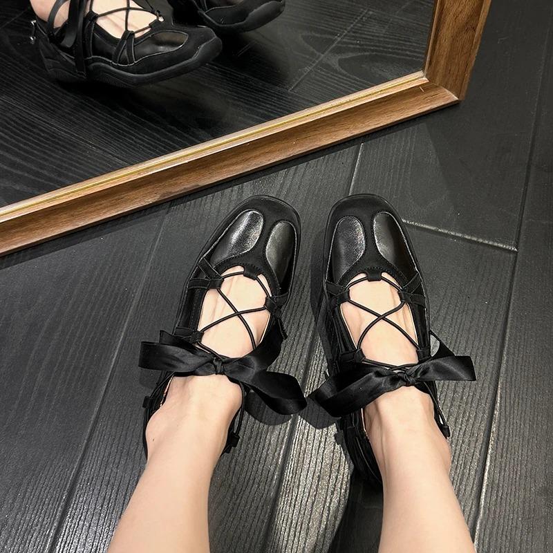 Балетки Sle с квадратным носком Мэри Джейн Oes Женские с увеличенной высотой Сладкая сестра Лента-узел Повседневные