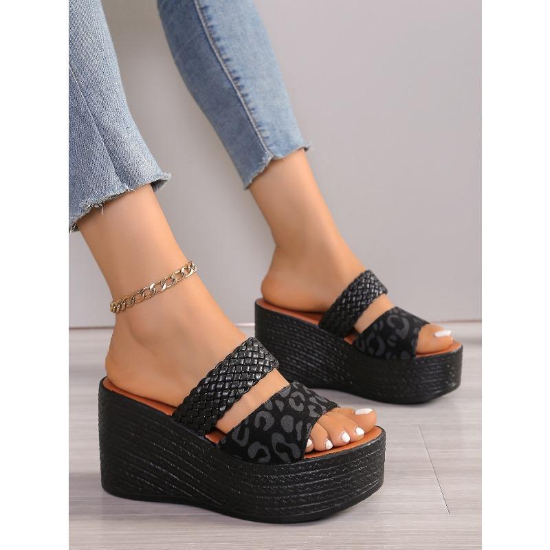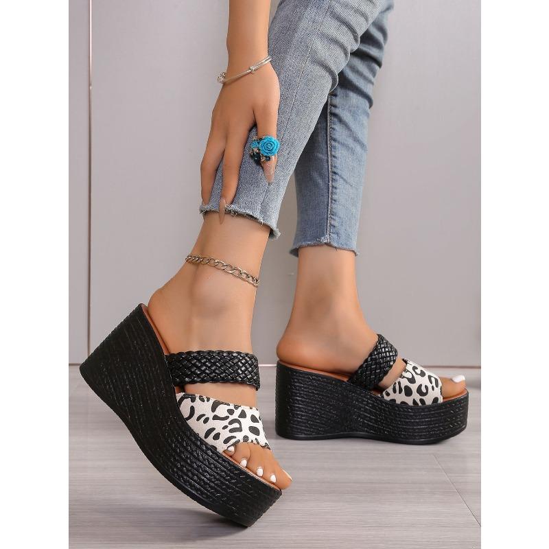 Шлепанцы на платформе с открытым носком с леопардовым принтом для женщин, шлепанцы на толстой подошве больших размеров