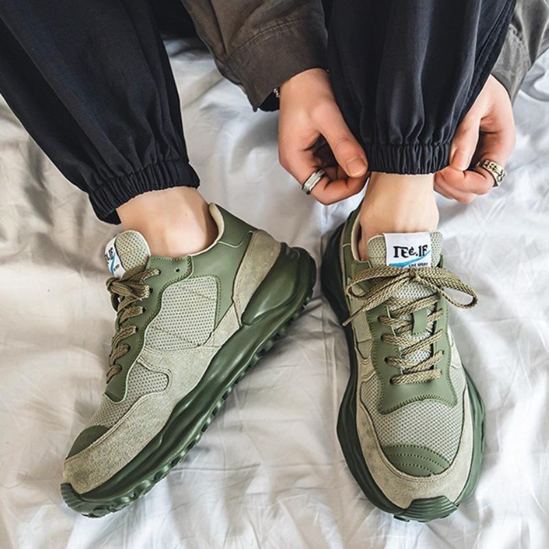 Высококачественная зеленая мужская повседневная обувь Дышащие кроссовки на высокой платформе для улицы Легкая износостойкая обувь для бега — купить товар онлайн с бесплатной доставкой по всему миру!