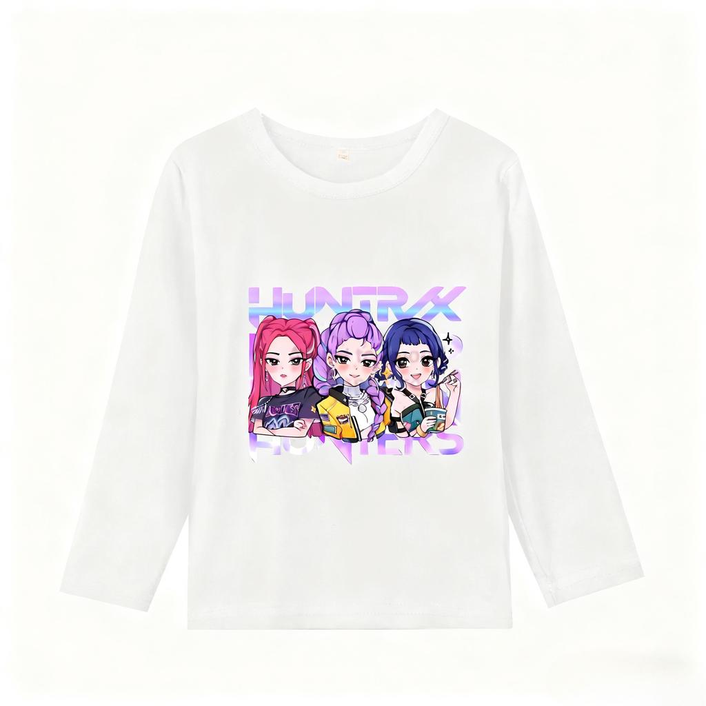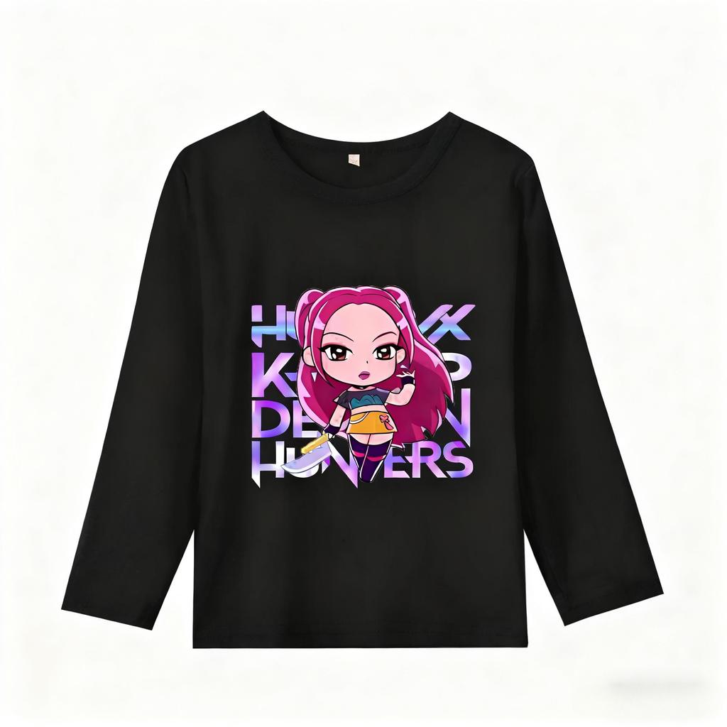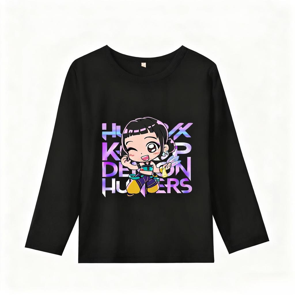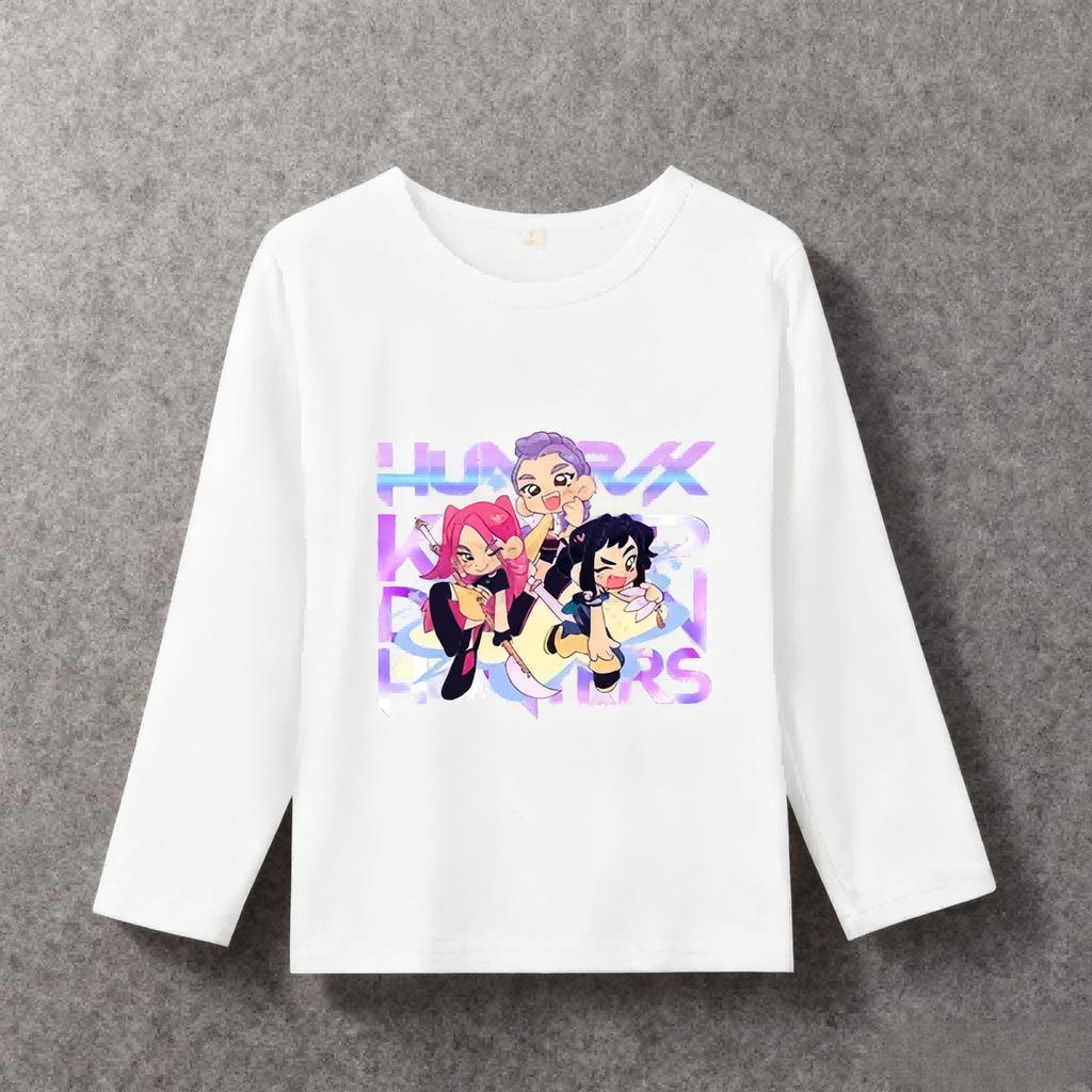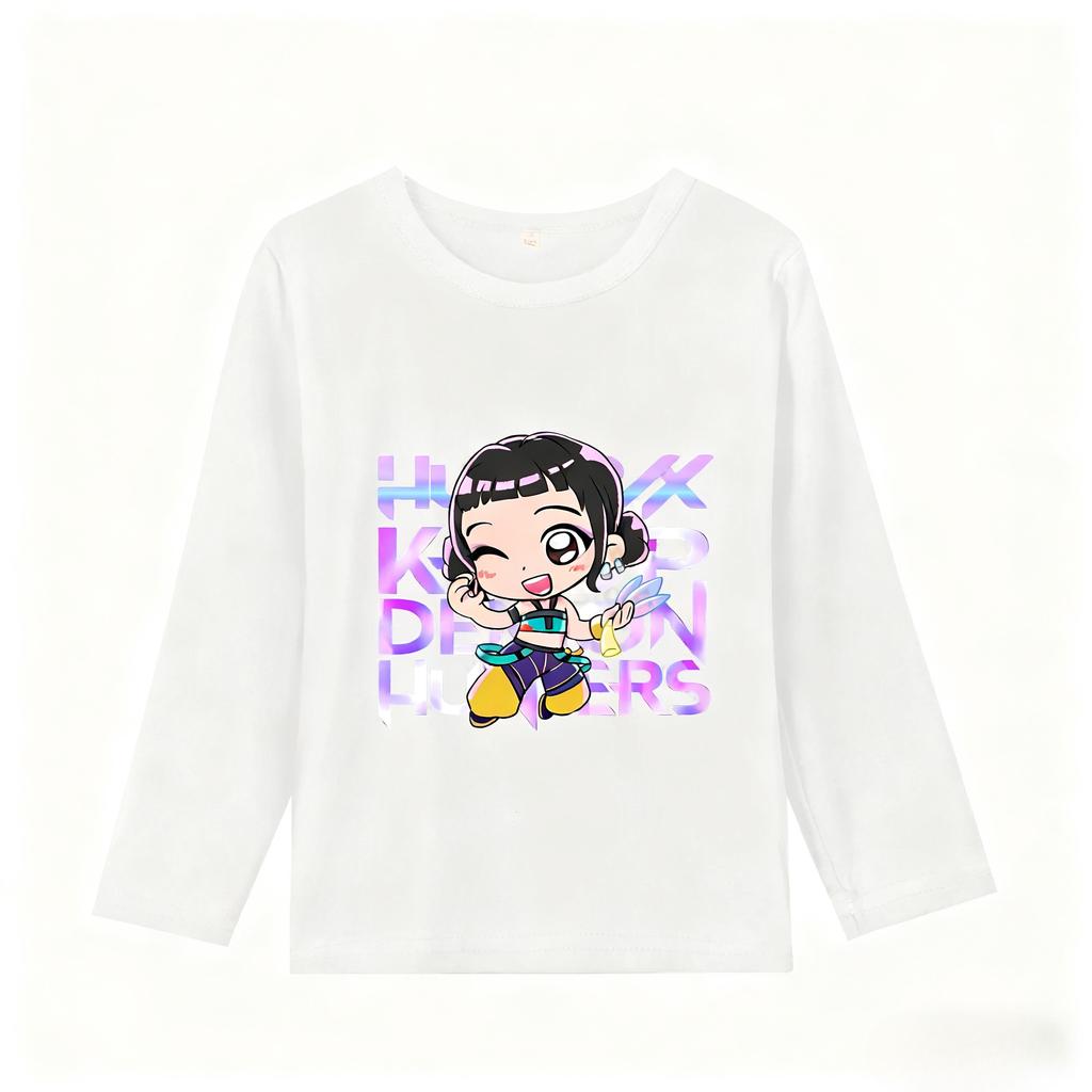 K-Pop Истребители Демонов Футболки с длинным рукавом для девочек Кавайные мультяшные топы с принтом Детские повседневные футболки Осенняя детская одежда