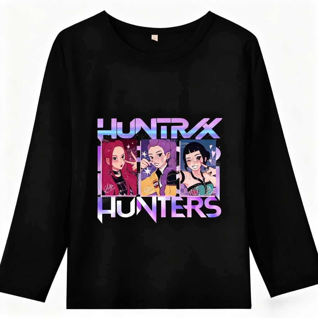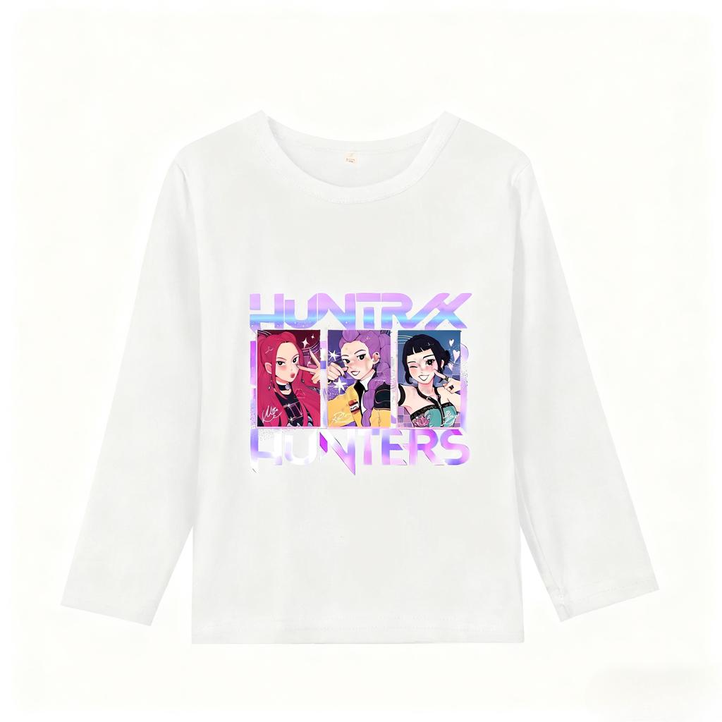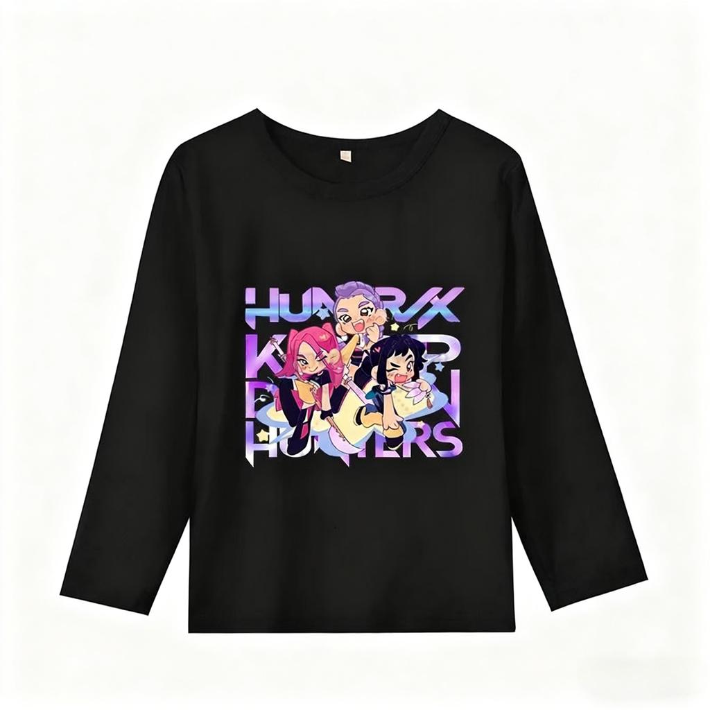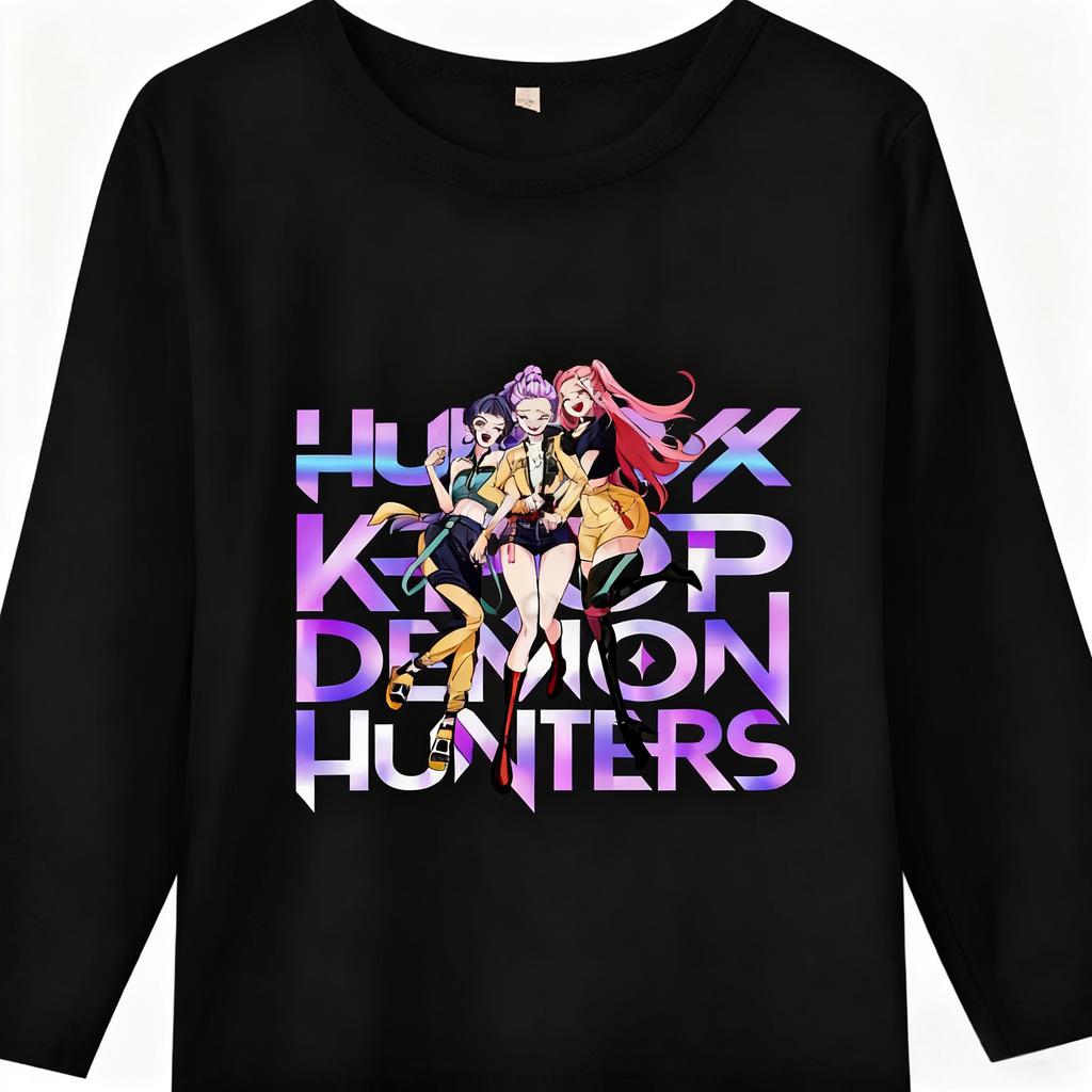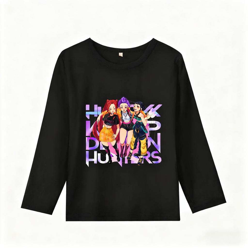 K-Pop Истребители Демонов Футболки с длинным рукавом для девочек Кавайные мультяшные топы с принтом Детские повседневные футболки Осенняя детская одежда