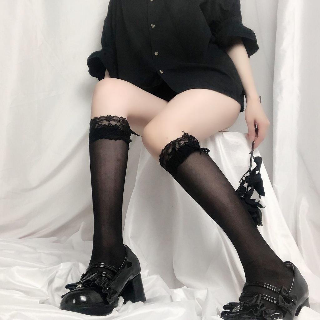 Женские весенне-летние тонкие кружевные носки до икры из чистого кружева