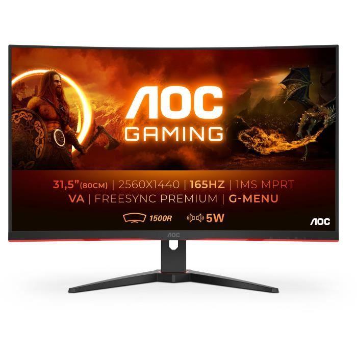 Ecran PC Gamer - AOC - CQ32G2SE/BK - 31,5" VA Incurvé QHD 1ms 165Hz HDMI DisplayPort HP Pivot Freesync Premium