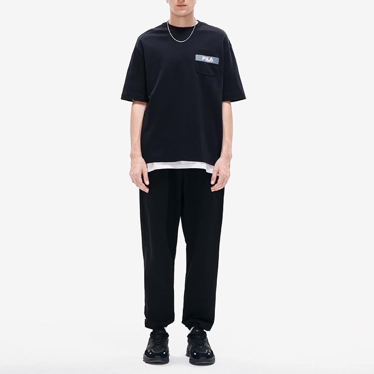 New FILA Drop Shoulder Sleeve T Shirt Men's Jet Black F11M219104FBK