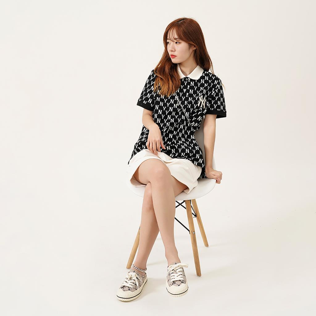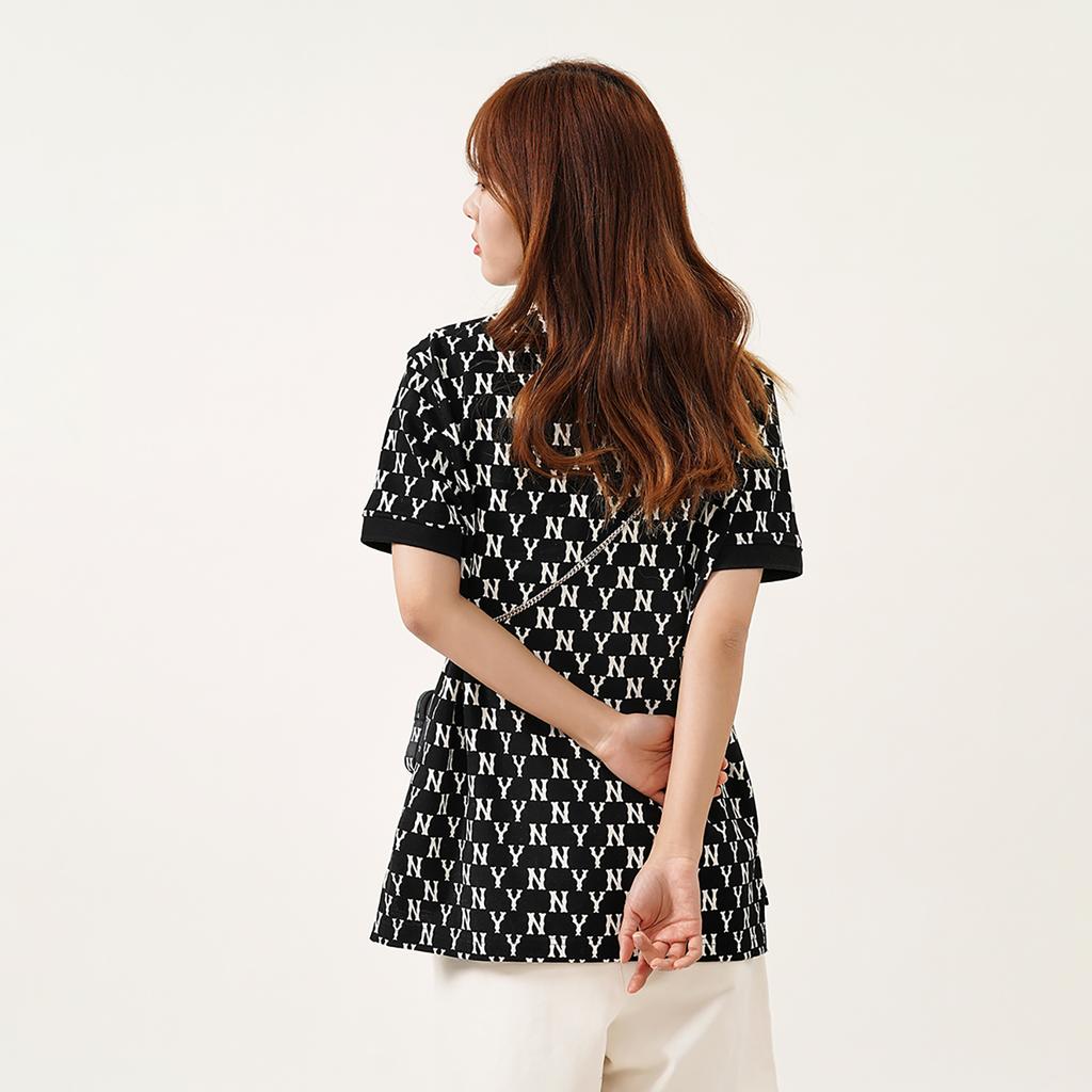 Новая женская рубашка-поло с базовым логотипом MLB, черная 3FPQM5023-50BKS