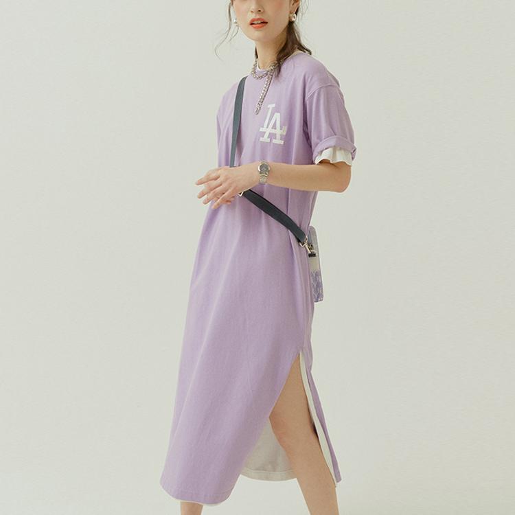 Новое женское платье с коротким рукавом MLB, фиолетовое 31OP10131-07V