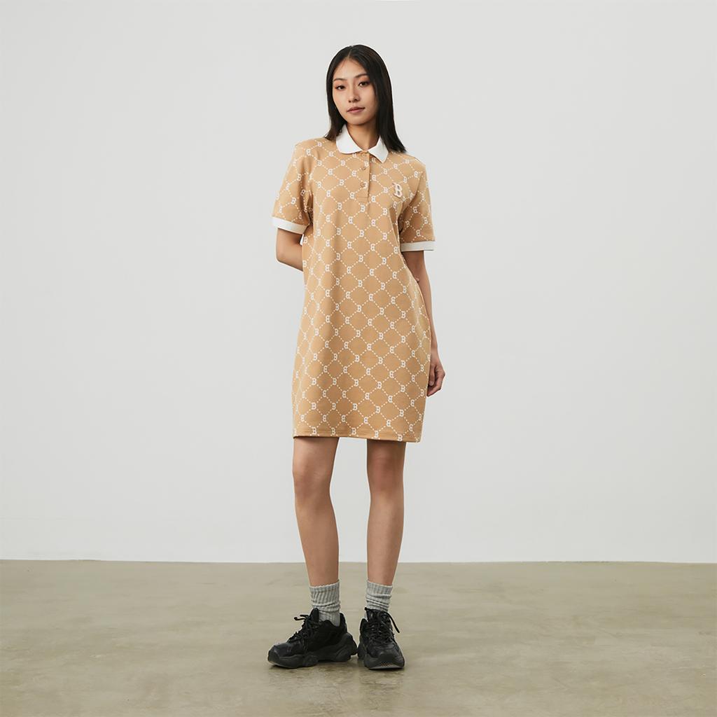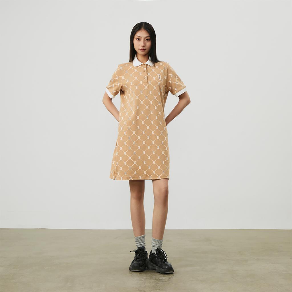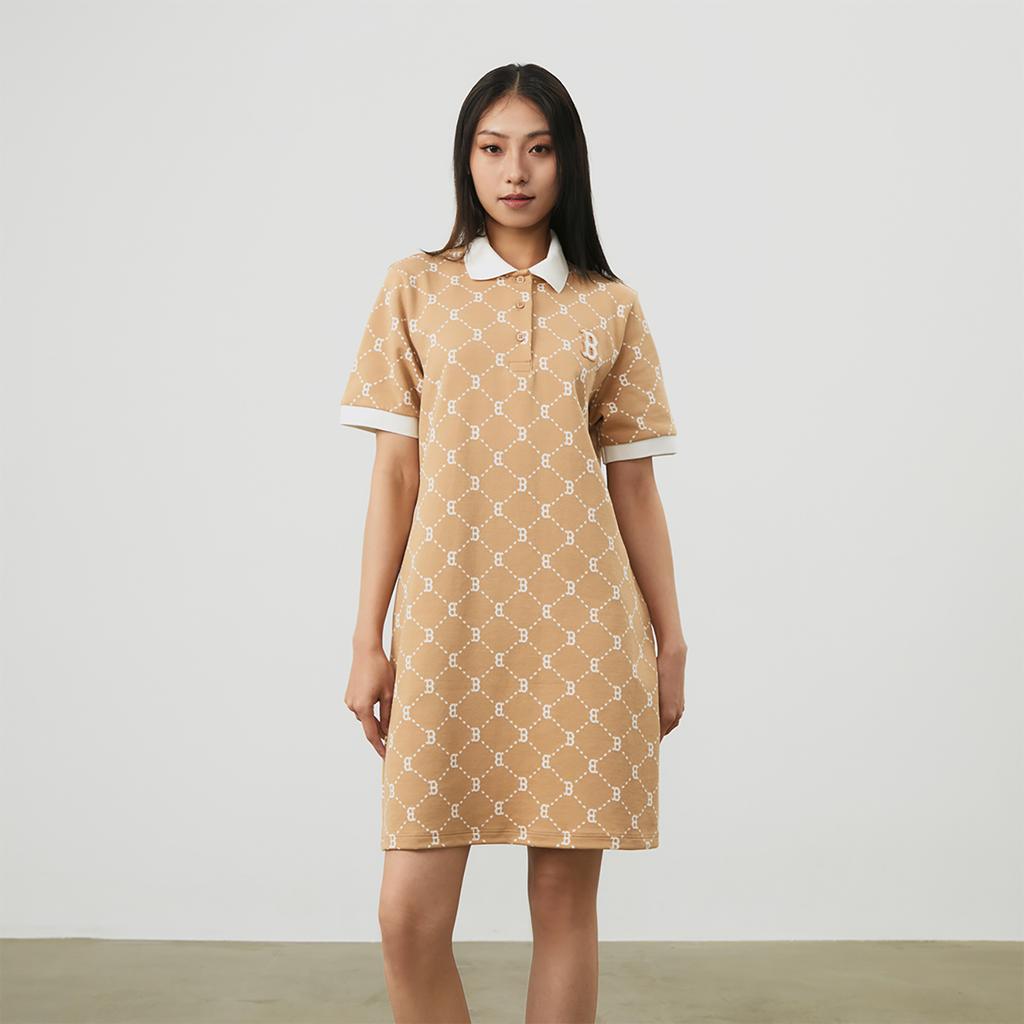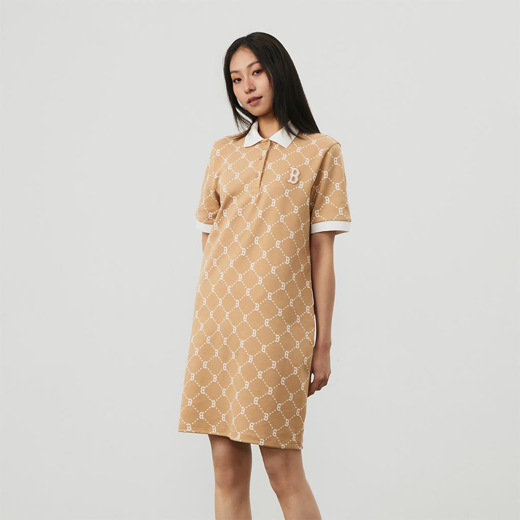 New MLB Boston Red Sox SS24 Short Sleeved Dress Women's Light Camel 3FOPM0443-43CAL