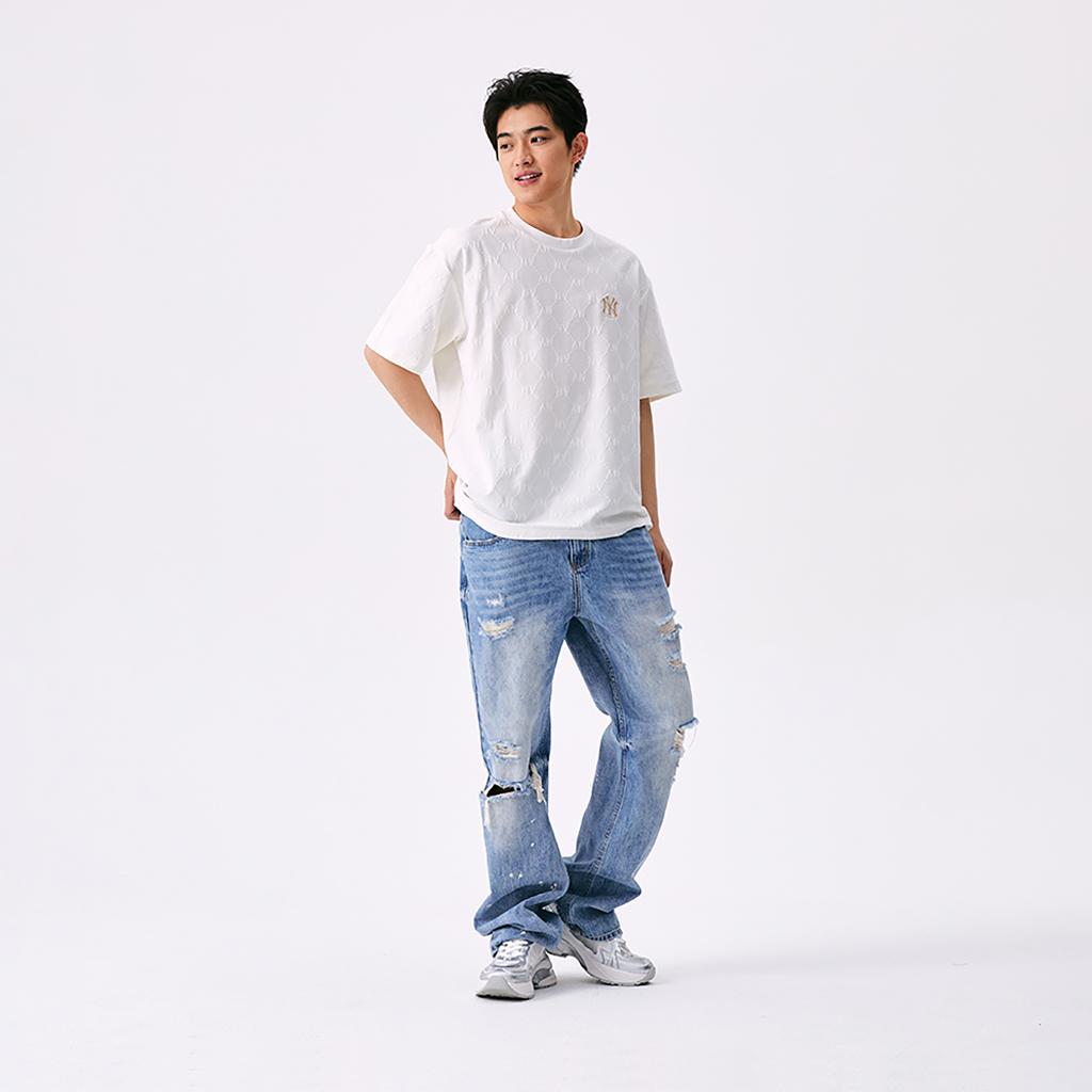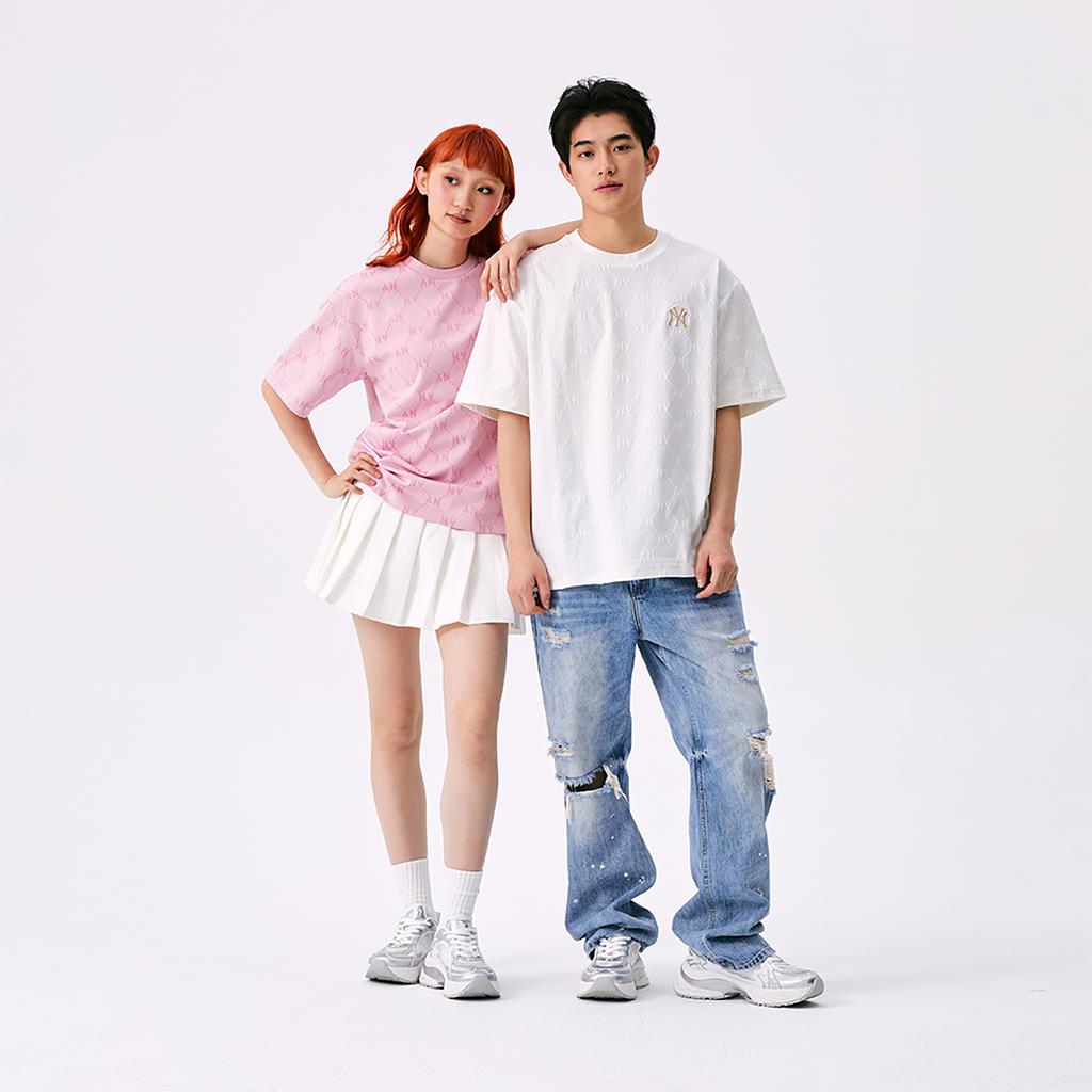 New MLB MONOGRAM Collection New York Yankees SS25 T Shirt Unisex Ivory 3ATSM1353-50IVS