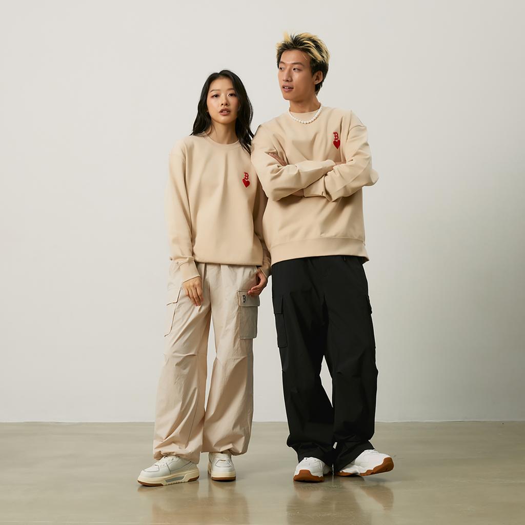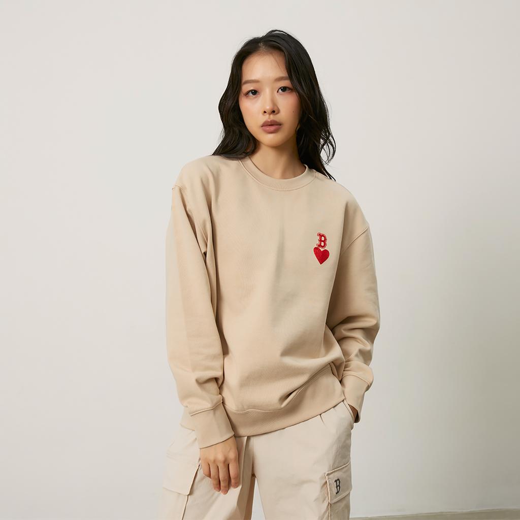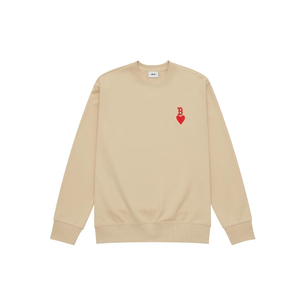 New MLB Boston Red Sox Heart Collection 24FW Early Autumn Pullover Crew Neck Sweatshirt Unisex Beige 3AMTH9144-43BGL