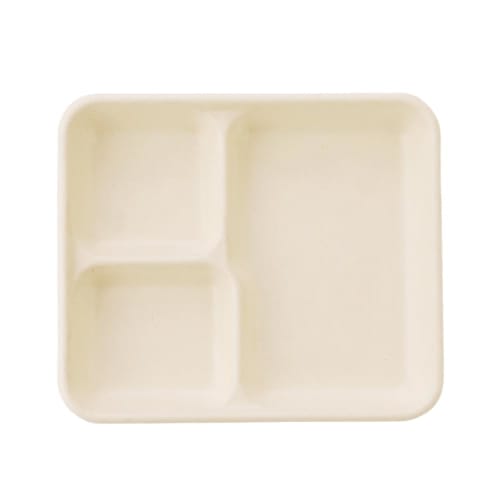 ECO&BASIC Three-Compartment Paper Trays, 50-Count, Square, Disposable, Stylish, Microwave-Safe, Made from Unbleached Bagasse, Durable, Stain-Resistant