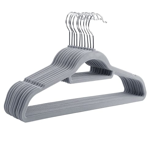 Вешалка AYO, Нескользящая, Противоскользящая, Нескользящая вешалка, Набор из 10 штук, Серая, Противоскользящая, Прочная, Для хранения в шкафу, Поворотный крючок на 360 градусов, Не деформирует одежду, Грузоподъемность