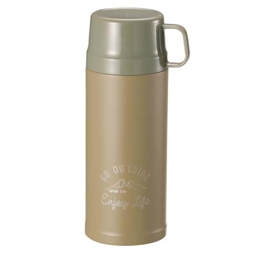 Captain Stag Sports Bottle, UE-3448, 2-Way Double Stainless Steel Water Bottle with Vacuum Insulation, Keeps Hot or Cold, Khaki, 600ml