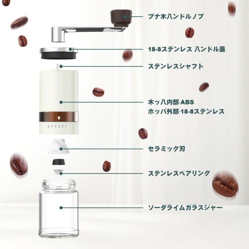 VKCHEF Coffee Mill, Hand Coffee Grinder with Ceramic Mortar, Coffee Bean Grinder, 6-Degree External Adjustment, Easy Cleaning, Washable, Compact, Rapi