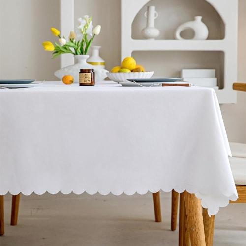 - Скатерть на 4 персоны. Края отделаны фестонами для милого вида. Размер 140 x 180 см, рекомендуется для стола на 4 персоны.