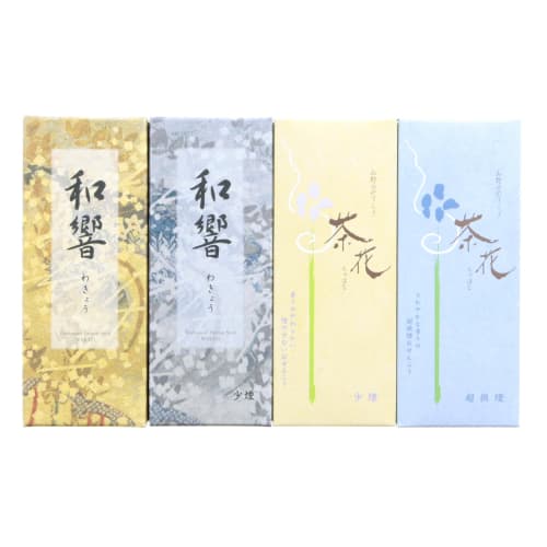 This is an assortment of 4 scented products, including Shorindo's popular oil ``Chaka'' and fragrant ``Wakyo'' containing the highest quality Indian sandalwood and Chinese herbal medicine.[Wakkyo] Enjoy the clean and elegant scent made with plenty of the highest quality Indian sandalwood and blended with Chinese herbal medicine and natural fragrances such as cinnamon and clove.Even after the cooking is finished, it has a scent that gently resonates with your mind and body.We offer ``regular type'' and ``light smoke type'' incense sticks based on sandalwood.[Chaka] Expresses a calm and elegant image with a floral scent.It's clean and refreshing, not too sweet, and has a faint lingering scent.Light, low smoke, deodorizing type of face wash.Chahana, light smoke... Soft fragrance with little smoke. Teabana, ultra-fine smoke... Ultra-fine smoke, with a refreshing scent. Incense/Sweet Floral - Top notes are peach, plum, and orange blossom.It evokes the image of gorgeous morning sunlight.-Middle notes are floral scents such as ylang-ylang, jasmine, tuberose, and carnation.-The last note is a sweet floral scent with notes of sandalwood, cedarwood, musk, amber, vanilla, and tonker bean.