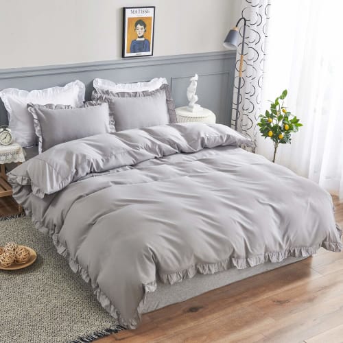 - Стильный дизайн Вокруг пододеяльника и наволочки есть милые оборки. Он имеет простой дизайн с однотонным рисунком, который хорошо вписывается в любой интерьер. Вы можете успокоить свое тело и разум и наслаждаться хорошим ночным сном каждый день.