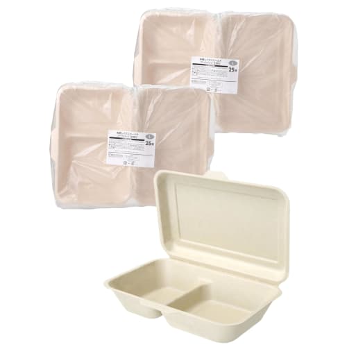 Strix Design Disposable Containers with Dividers for Lunch Boxes and Food Packs, 50 Count (25 Count x 2 Packs), Large, Unbleached, Water and Oil Resis