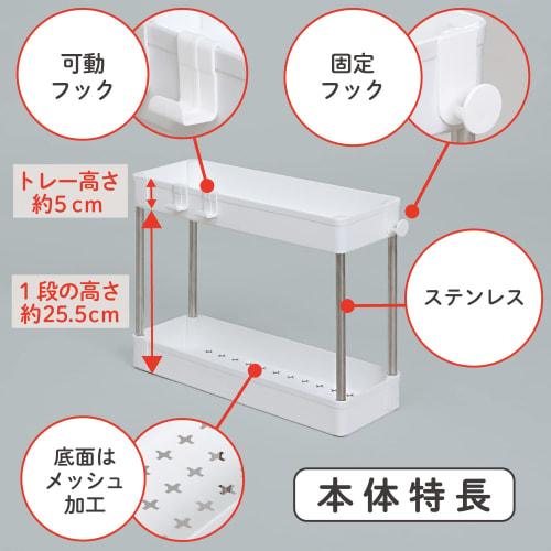 Product introduction Product name: Under sink storage slim 6E-211-A Size: Approximately width 13 x depth 40 x height 31 cm Color: White Contents: 1 unit Load capacity: Approximately 3 kg per tray Material: Polypropylene/stainless steel Country of origin: China [Features] ●Storage rack with the perfect height for under the kitchen sink or washbasin.●Slim type with a width of 13cm that can be placed in narrow spaces.Comes with 2 types of hooks.●Can be used to store cleaning supplies, seasoning racks, stocking daily necessities, etc.●It can also be used to store and organize small items on the living room, desk, and sink.●The bottom of the tray has well-designed holes for good ventilation.●Includes 2 hooks that can be moved and 2 clasps with hooks that can be fixed in position.[Note] ●It is an assembly type.●Please read the included instructions carefully and use the product correctly.[ASTRO CO., LTD] Established in 1970, we sell original ASTRO products as a manufacturer of non-woven fabric storage and daily necessities.We manage everything from fabric development, manufacturing, distribution, and quality control in-house.We have been planning and selling a variety of daily necessities, mainly storage supplies.Astro will continue to create products that make life fun and convenient.established in 1970 Safety warning included