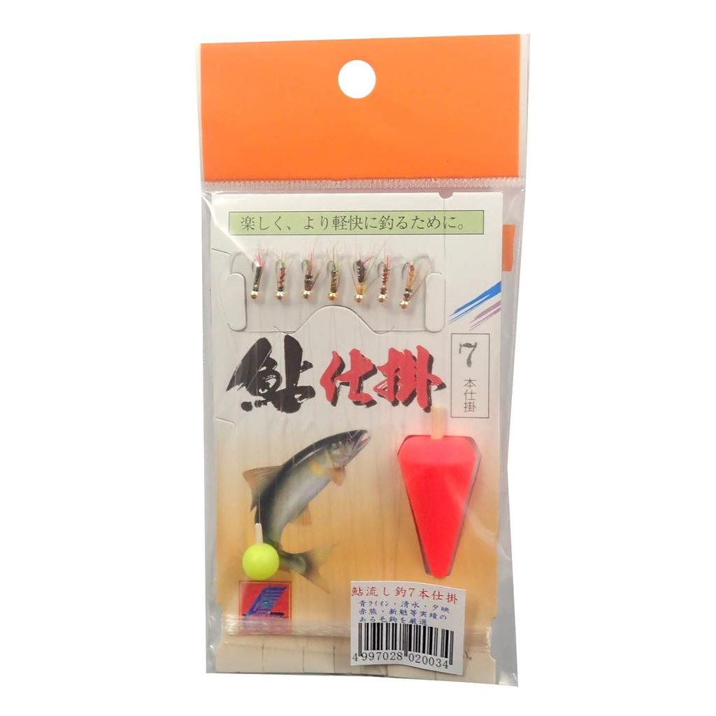 Fairy Ayu Drifting Fishing Set Assorted Float Size Ayu Hooks Rig, 7-Piece (with Horns), Colors, 2.8