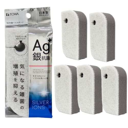 Towa Sangyo Ag Antibacterial Bath Sponges, Suppress Bacteria Growth, Made in Japan, Gray, Approx. 7.6 x 4.5 x 15.8 cm, Set of 5