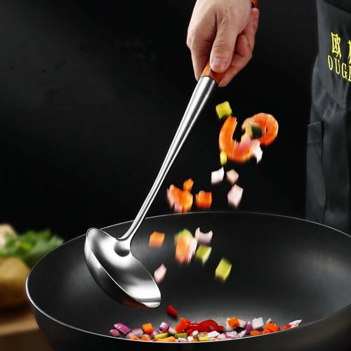 FJNATINH 17-inch Wok Ladle, 304 Stainless Steel Wok Spatula (Walnut)