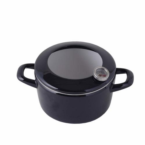 Fuji Enamel Tempura Pot with Thermometer, Gas and Induction Compatible, Black, 16cm Round, Mini Fryer, Double-Handled Pot
