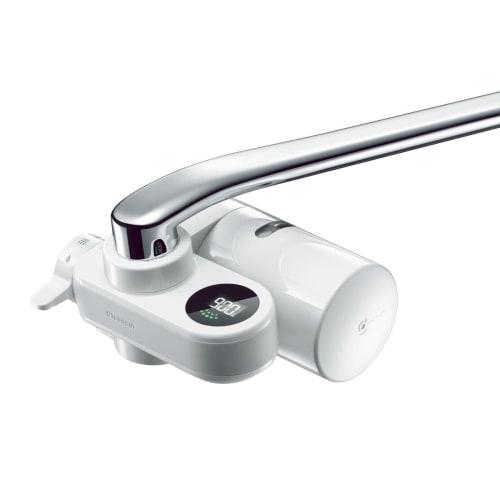 - Easy to read backlit LCD You can see the cartridge life at a glance with the large numbers and backlight.Countdown the remaining life of the water purification cartridge in liters.When the water reaches zero liters, the number and orange LED will flash, so please replace the water purification cartridge.The green LED will blink for approximately 30 seconds to indicate proper flow rate.If the flow rate is over, please turn off the faucet when the number flashes.The battery replacement sign is when the battery symbol lights up, indicating that the battery is low.When the battery symbol flashes, replace the battery.Battery life is approximately 1 year.