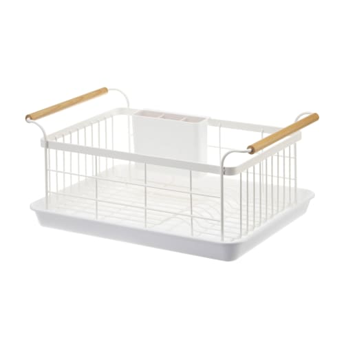 Yamazaki Tosca Dish Drainer Basket, White, Approx. W47 x D33.5 x H20cm, with Cutlery Pocket, 3107