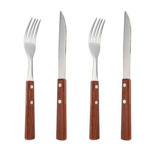 KXLCGYK Steak Knife and Fork Set, Wooden Handle, 18-8 Stainless Steel, 4-Piece Set, Stylish Cutlery