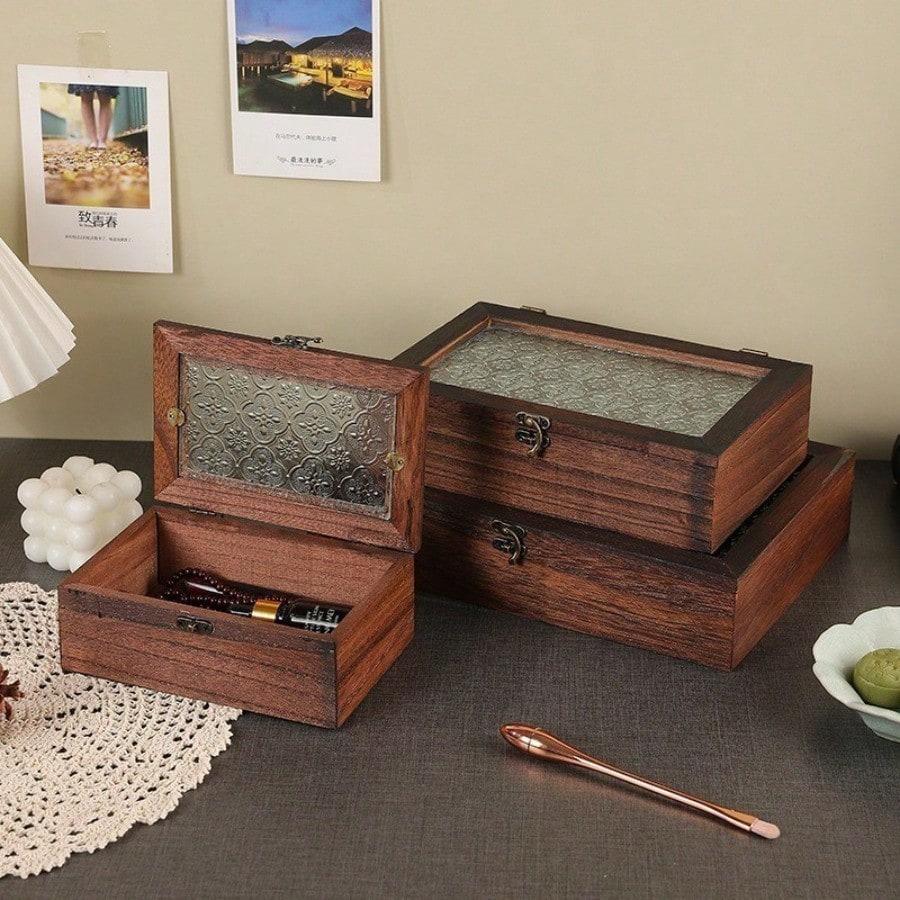 Деревянная коробка под стеклом из яблони для дома, для хранения сухофруктов, пыленепроницаемая
