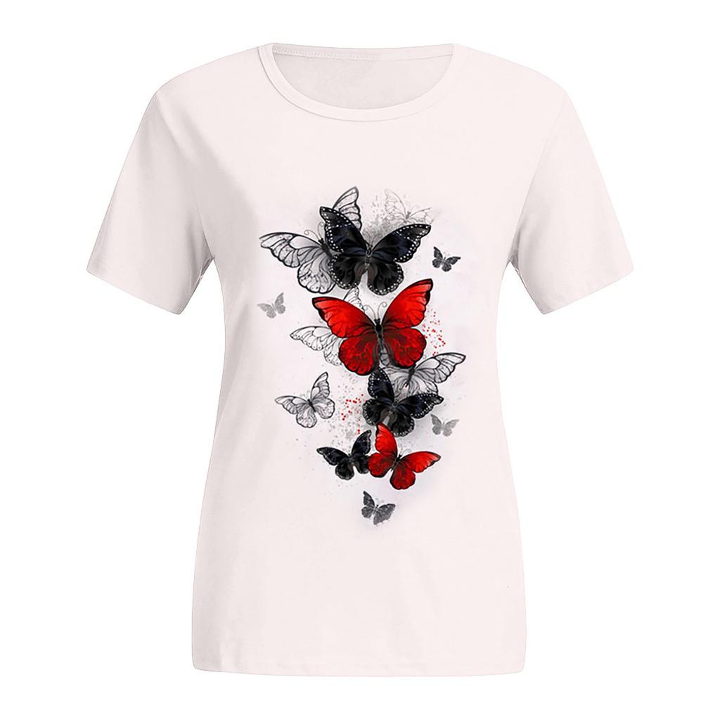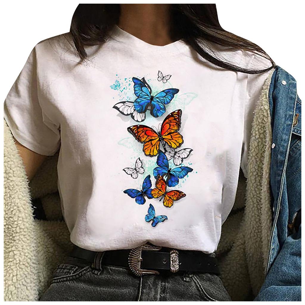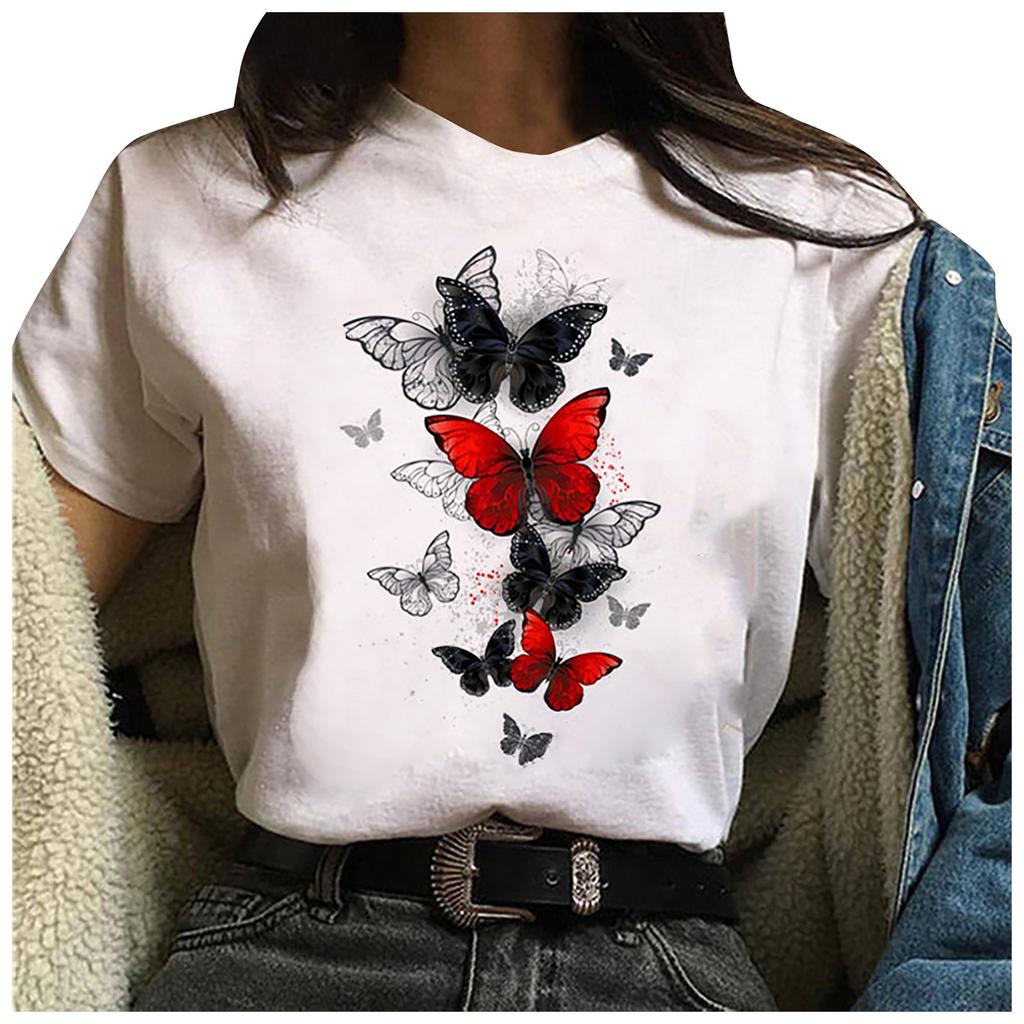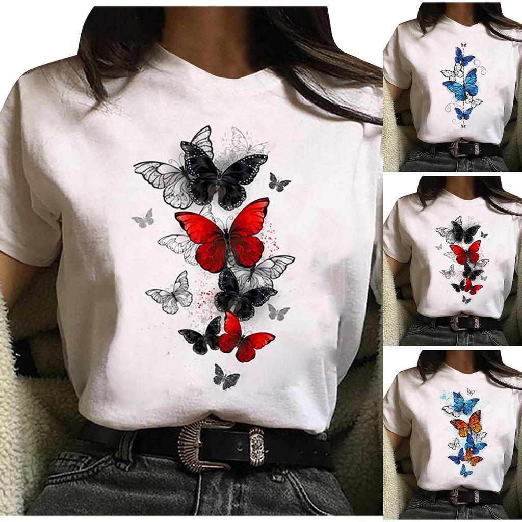Модная женская повседневная свободная футболка с принтом бабочки, топ с коротким рукавом