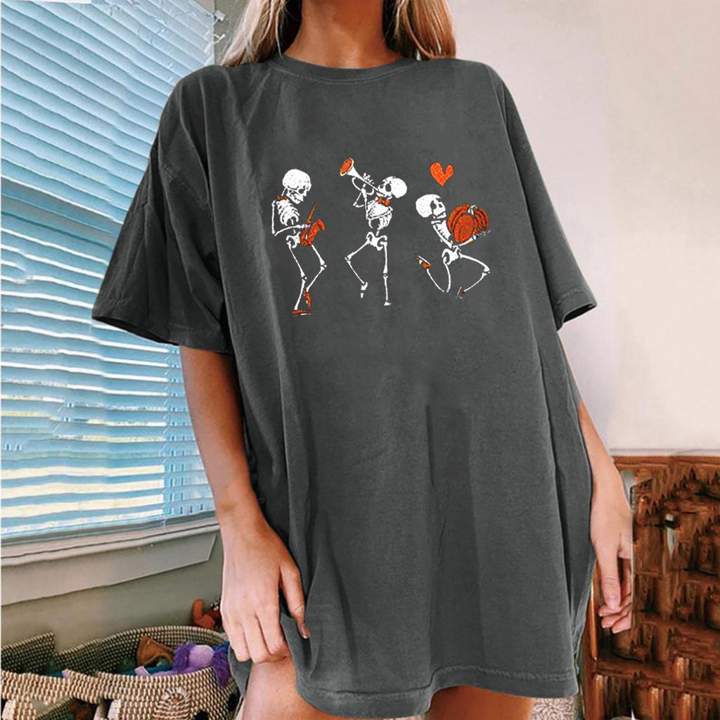 Женская свободная блузка с круглым вырезом и коротким рукавом, футболка с принтом Хэллоуина, топ