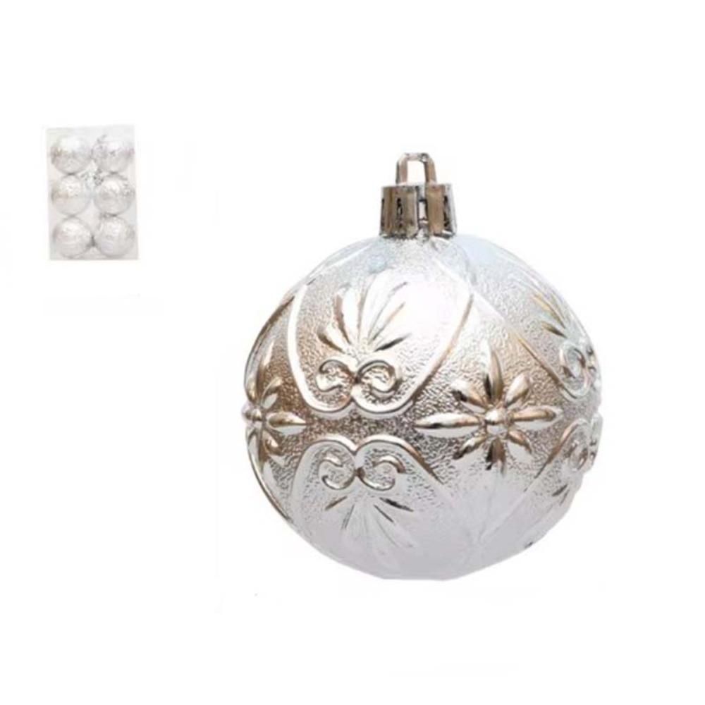 6Pcs/box Electroplated Christmas Tree Hanging Ball Embossed Christmas Ball Ornament Navidad