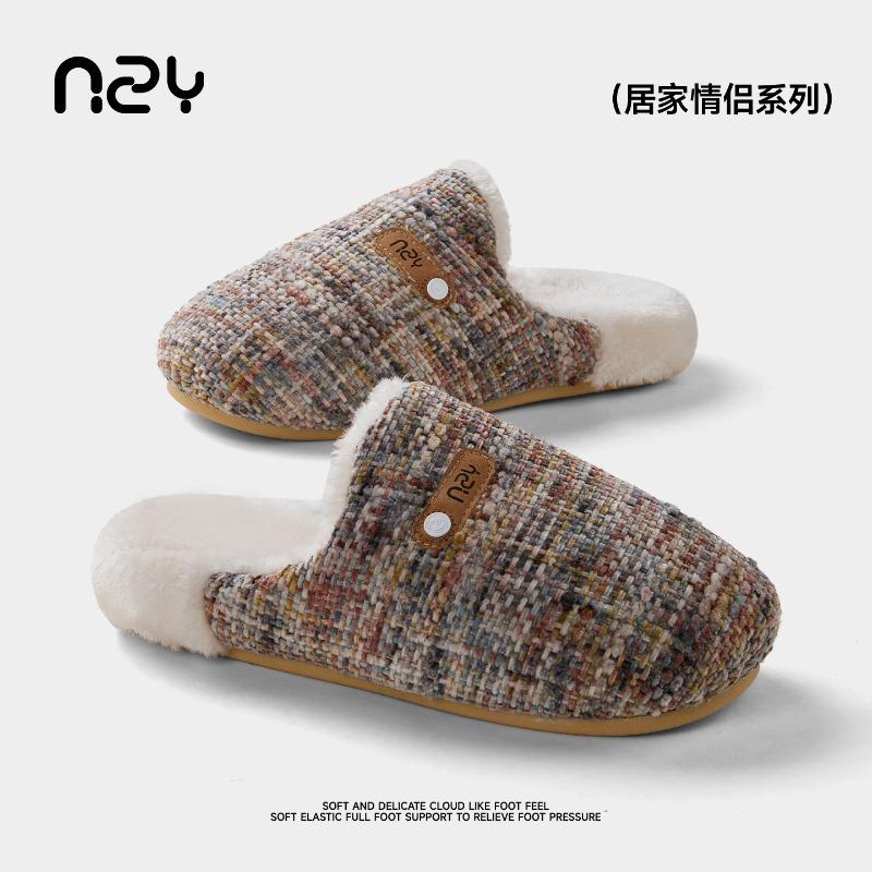 Хлопковые тапочки женские осенне-зимние ретро клетчатые домашние комнатные бархатные теплые и нескользящие парные хлопковые туфли мужские пушистые тапочки
