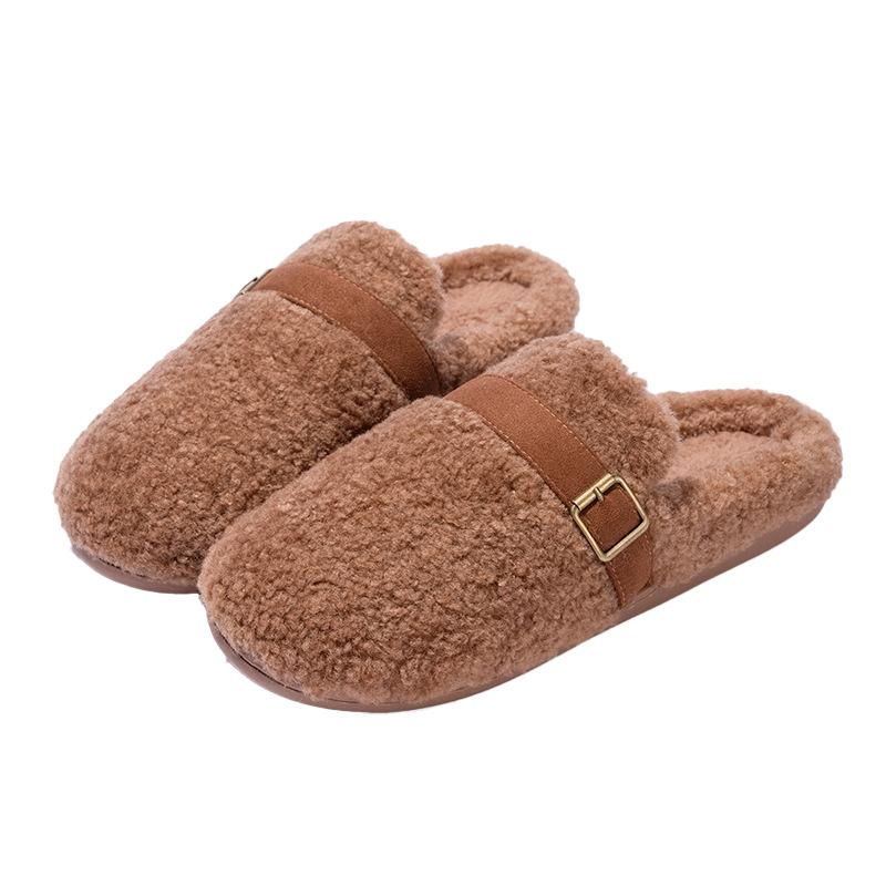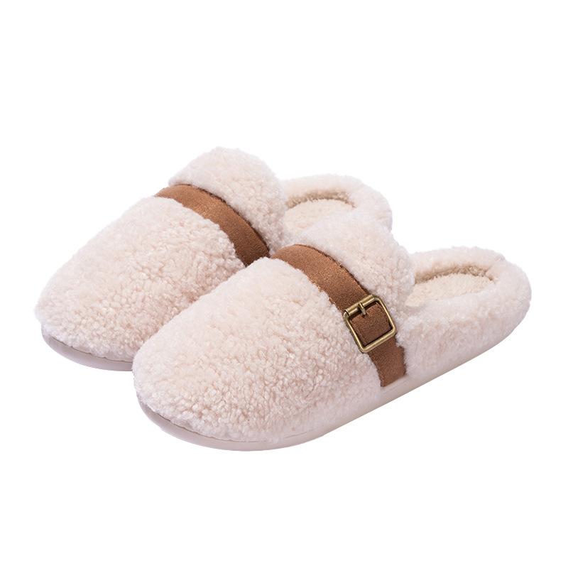 Новые простые тапочки-шлепанцы с универсальной пряжкой, осенне-зимние, домашние, из бархата, теплые, нескользящие, хлопковые тапочки для пар
