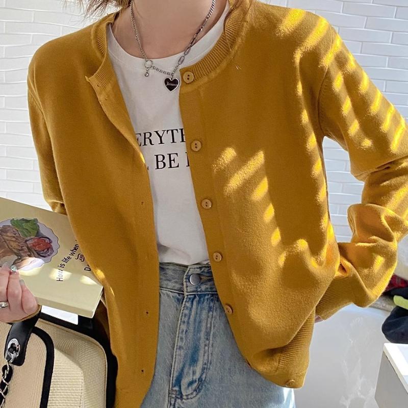 Женский вязаный кардиган с длинным рукавом на весну-лето, корейский свободный приталенный свитер, верхняя одежда