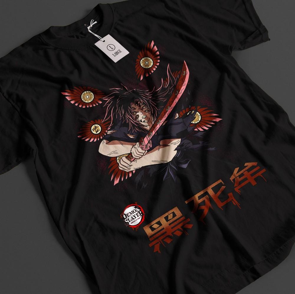 Рубашка Истребитель демонов Кокушибо Верхняя луна 1 Футболка Тандзиро KNY Аниме Мудзан Футболка