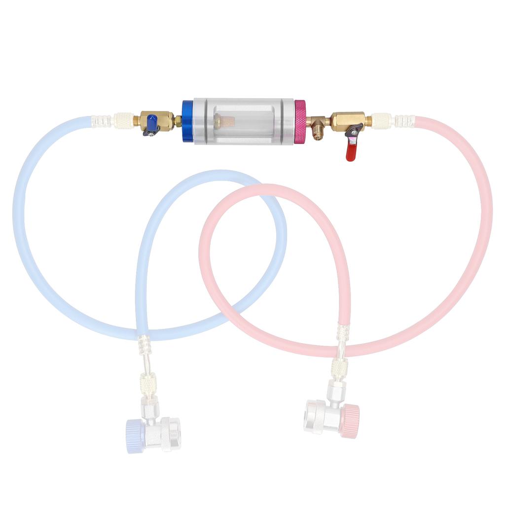 4. (Фильтрация холодильного масла \u0026amp; Функция идентификации): Встроенный фильтр высокой плотности, эффективно фильтрующий алюминиевую пыль и примеси в трубопроводе кондиционирования, восстанавливающий чистоту холодильного масла в системе и улучшающий охлаждающий эффект кондиционера. Через 10 минут очистки закройте клапаны высокого давления фильтра и дайте хладагенту вернуться в стеклянную трубку, чтобы оценить качество хладагента.