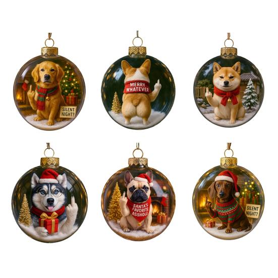 Юмористический штрих: Поднимите праздничную атмосферу с нашей коллекцией забавных собачьих украшений, которые привносят игривость и нотку бунтарства в традиционный декор.. Позвольте вашему любимому питомцу продемонстрировать свой праздничный дух с помощью этих очаровательных и забавных украшений.