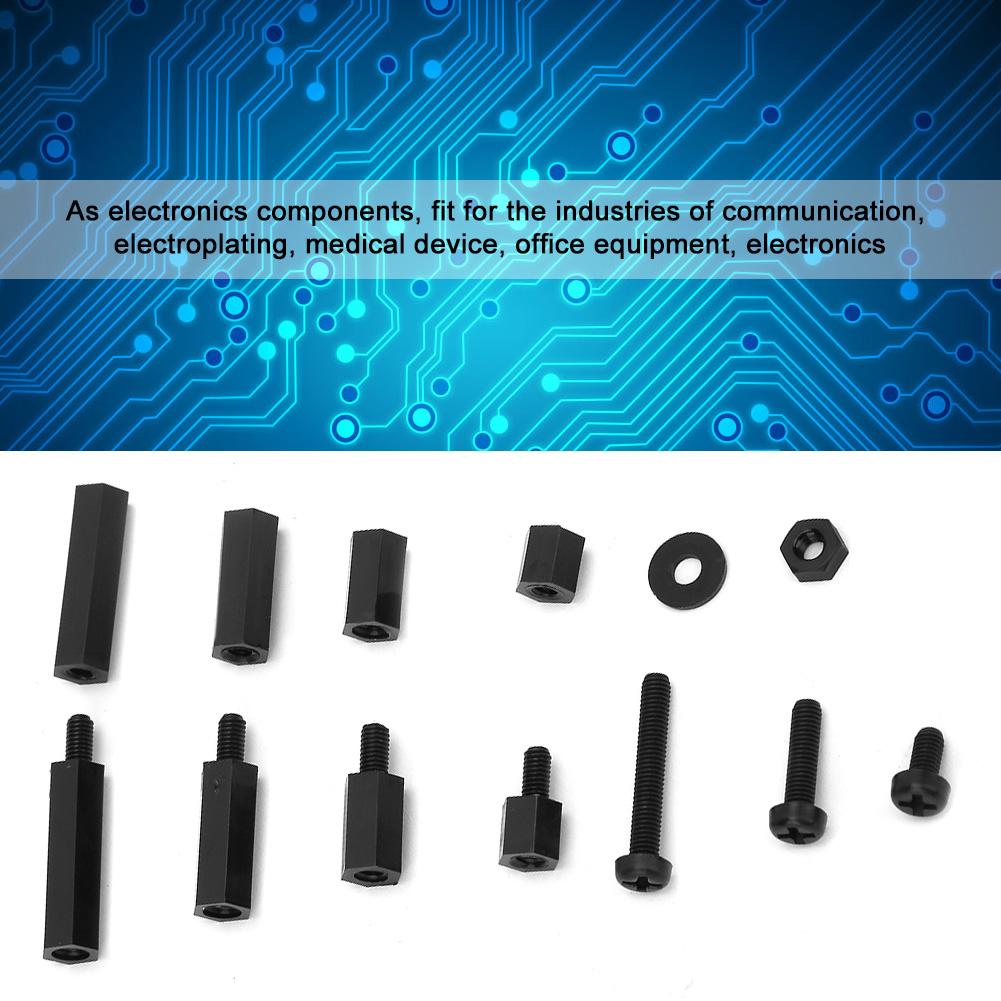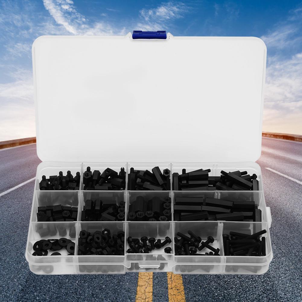 Коробка 320 шт. Черный нейлон Двусторонние шестигранные стойки-распорки Винт M3 Гайка и набор винтов
