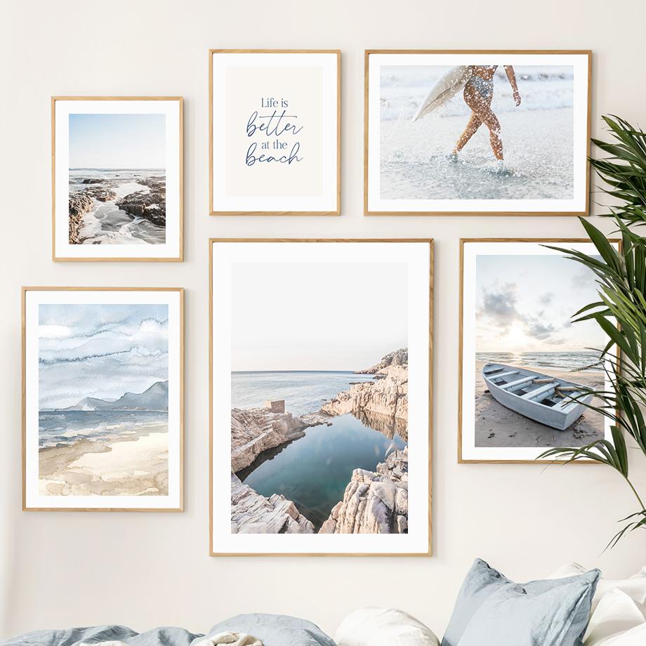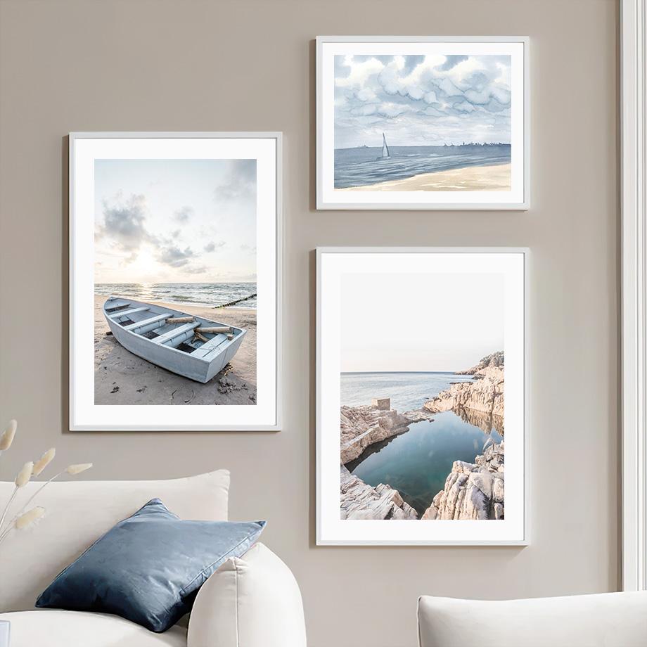 Морской Пляж Девушка Лодка Риф Пейзаж Настенное Искусство Холст Живопись Скандинавские Постеры и Принты Отель Ba Картины Для Декора Гостиной