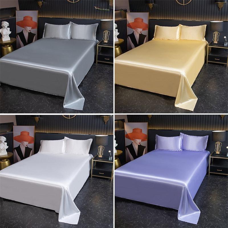 Роскошные летние атласные простыни из ледяного шелка, наволочки, постельное белье, однотонные простыни