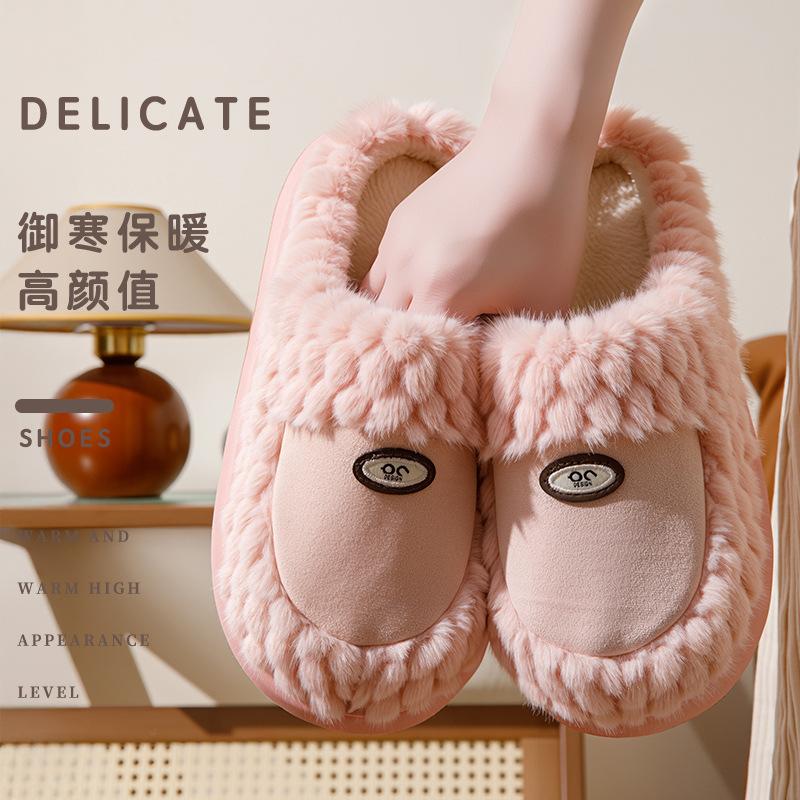 Хлопковые тапочки осень и зима домашние комнатные флисовые на толстой подошве теплые парные плюшевые туфли