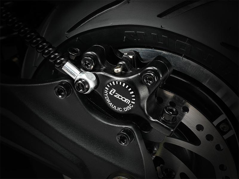 Сочетание гидравлических тормозов ZOOM двойного действия и электронного торможения обеспечивает уверенную тормозную силу. В сочетании с регулируемой гидравлической подвеской эта конфигурация обеспечивает стабильную управляемость и эффективную амортизацию на различных дорожных покрытиях.