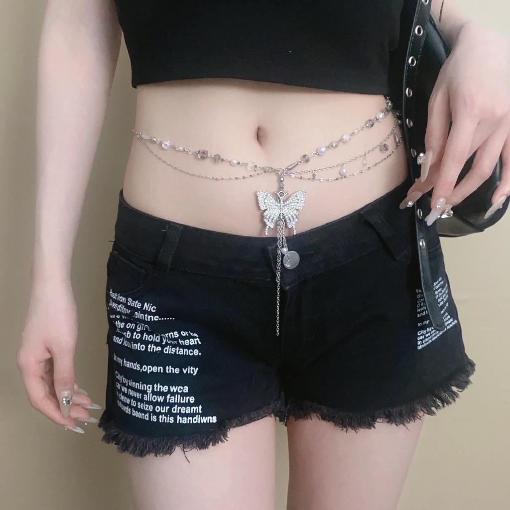Роскошная цепочка на талию с кисточкой-бабочкой из бриллиантов для женщин, милая и крутая, для горячей девушки, цепочка из круглых бусин, плетеный ремень, нишевый ве