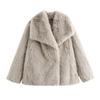 Элегантный дизайн: Оцените изысканность однотонного искусственного меха и плюшевой отделки, украшающих эту куртку, излучающую утонченную и женственную эстетику.