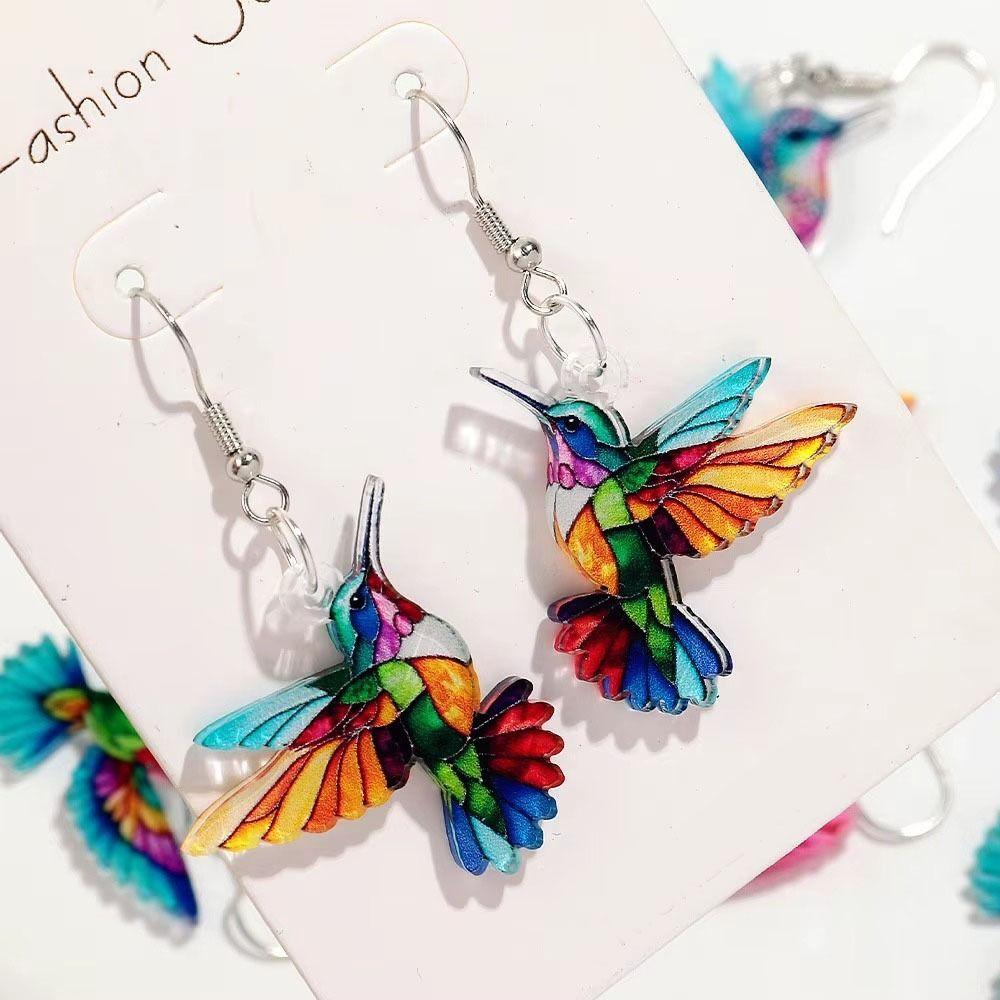 Акриловые Красочные Серьги-Колибри Заявление Ювелирные Изделия Серьги-Пуссеты Ювелирный Аксессуар