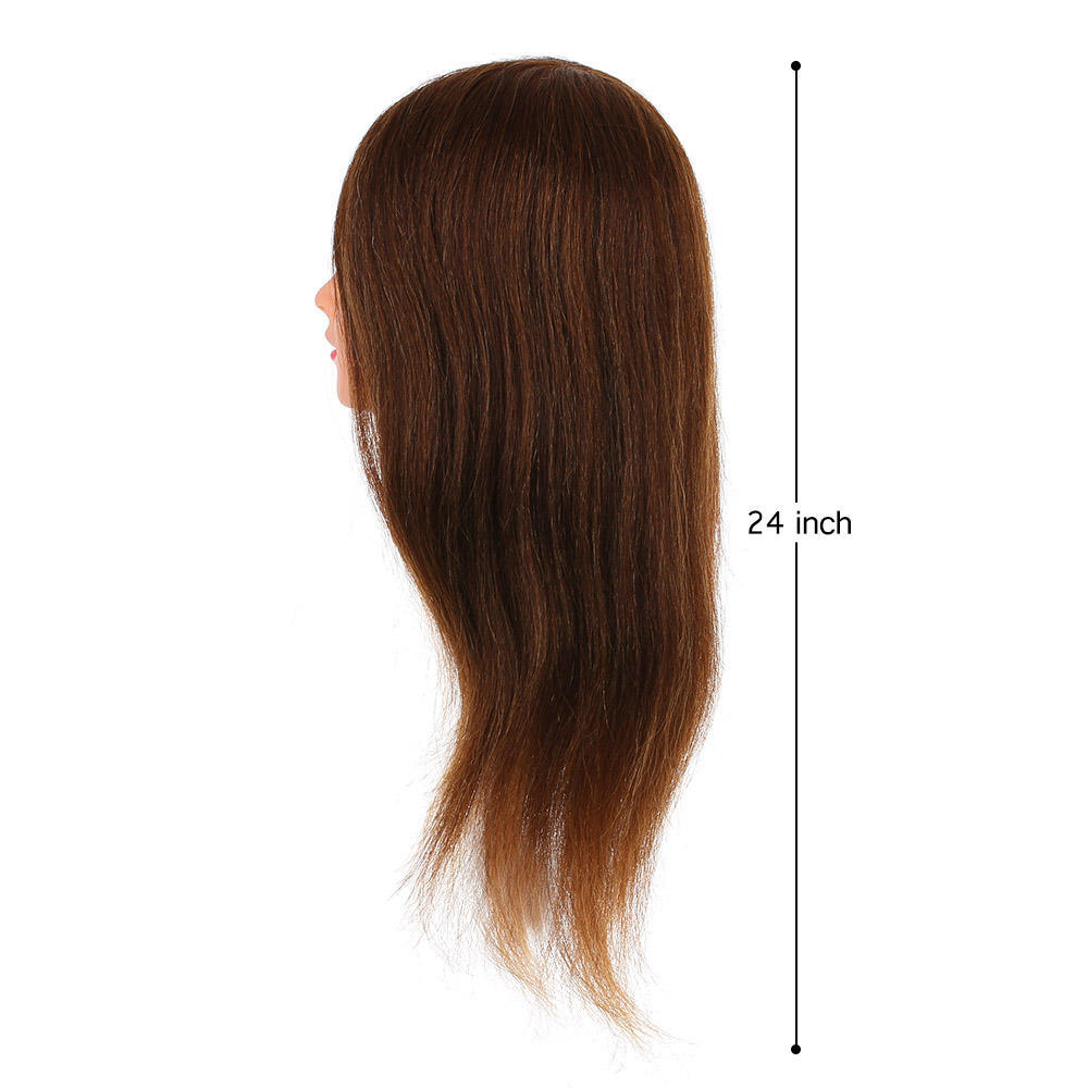 Волосы этой парикмахерской учебной головы сделаны из 60% человеческих волос и 40% волос из синтетического волокна. Он мягкий и который можно использовать для практики стрижки волос, плетения кос, окрашивания и марселя.
